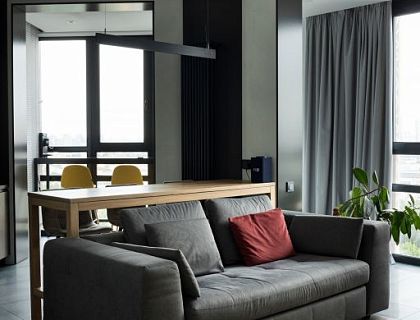 LF20 apartment — небольшая квартира (100 м2) на Васильевском острове, Санкт-Петербург, для молодой будущей студентки архитектурного ВУЗа. В интерьере сочетаются минималистичные формы, большие белоснежные объемы, мебель в стиле баухауз и деревянные поверхности.