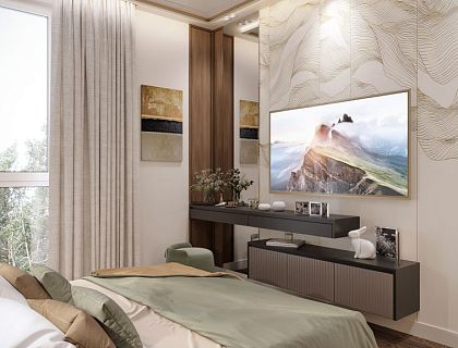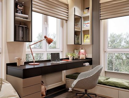 Этот проект можно назвать чудесным преображением двухкомнатной панельки в полноценное функциональное дизайнерское пространство с тремя спальнями, двумя гардеробными, кабинетом и общим пространством кухни-гостиной. Грамотное планировочное решение творит чудеса.