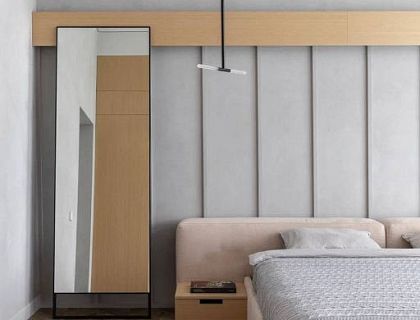 Дом минималистов. Бытовая техника вся за створками шкафа, которые при открытии заезжают в сам шкаф.