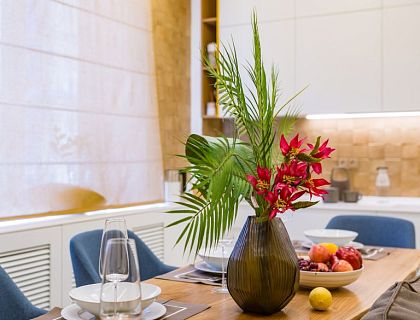 Студийное пространство с кухней-островом, мастер-спальня с гардеробной и санузлом, вторая спальня с рабочим местом, детская для близнецов и большая гостиная с акцентами современной классики и премиального уюта.