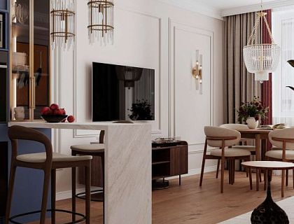 Одноэтажный дом площадью 270 м² в КП «Русская усадьба» выполнен в стиле минимализм с приглушённой цветовой палитрой. Пространство наполнено светом благодаря большим панорамным окнам, которые создают гармоничное единство интерьера с природой. Лаконичные формы и сдержанные оттенки подчёркивают атмосферу спокойствия и современного комфорта.