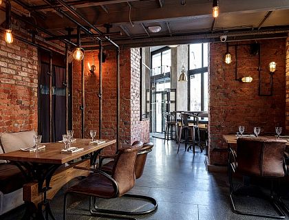 Ресторан Сварня всегда предусматривало в интерьере использование металла. Последний проект - это новое прочтение, не изменяя привычным отделочным материалам. Акцент сделан на баре и зоне, разделяющей зал и кухню. Большие металлические объемы плавно переплетаются и врезаются друг в друга по всей длине и высоте помещения. Чтобы подчеркнуть масштаб этой конструкции, было принято решение декорировать 120 кв.м. стен жидким металлом, так удалось добиться нужного эффекта монолитной конструкции.