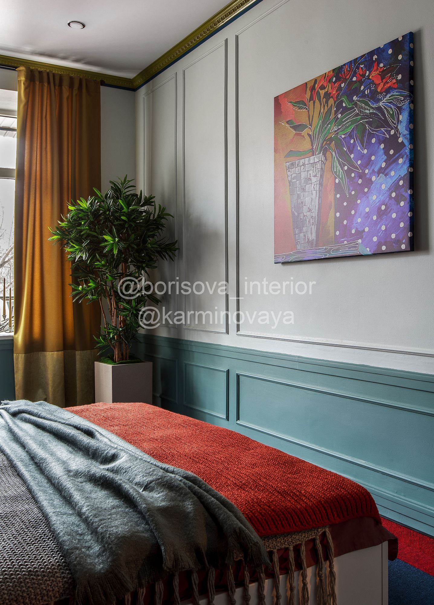 Фото интерьера, Спальня площадью 19 кв.м. в стиле Фьюжн/Эклектика/Китч. Проект Спальня для актеров - Телепроект Бесплатные метры, Автор проекта: Дизайнеры Ольга Борисова
